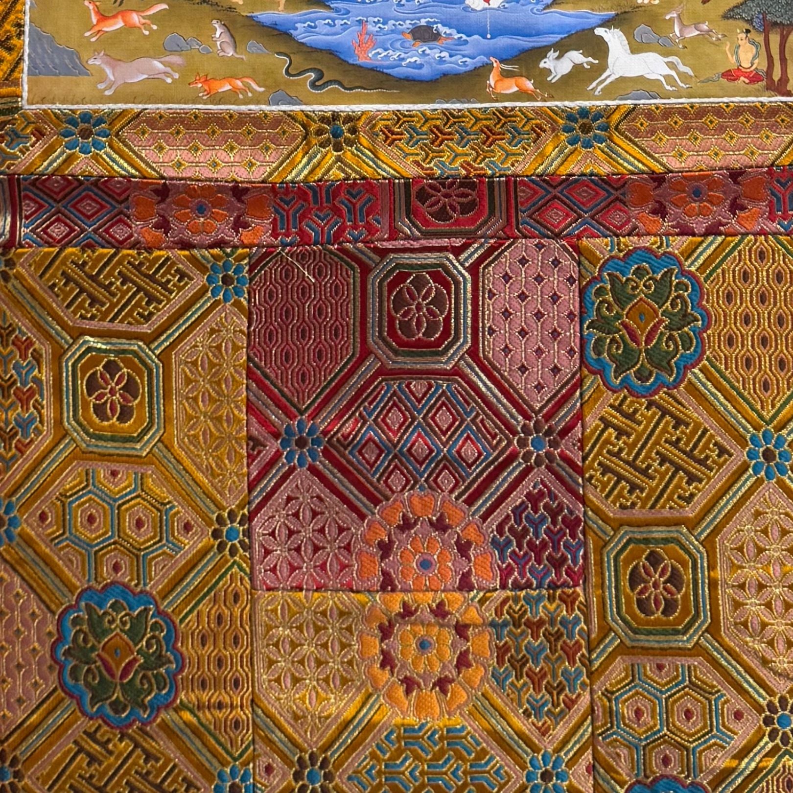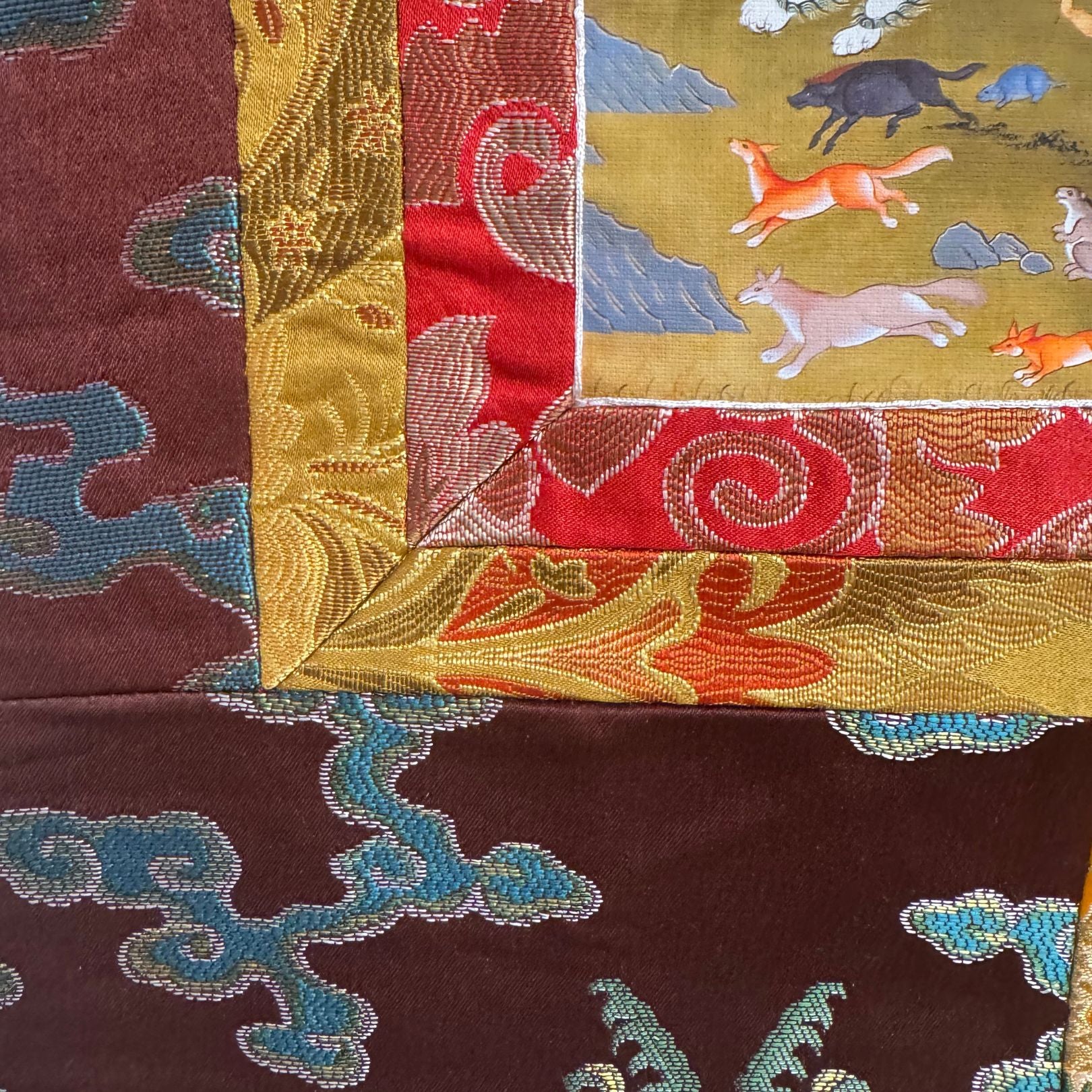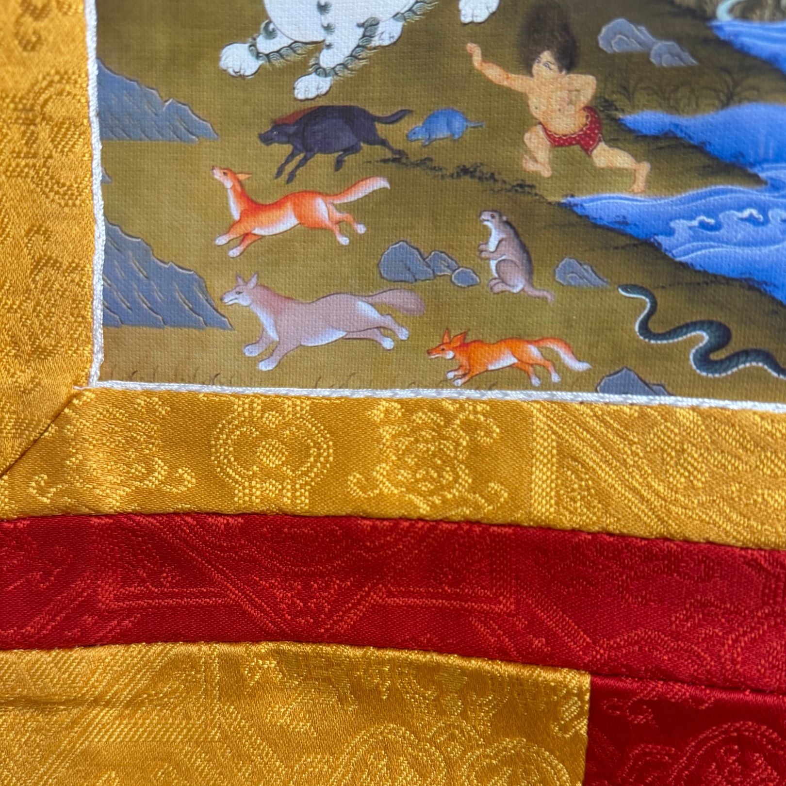 Package #2 Medium Thangka $320 USD Medium Sized Framed Brocade Thangka (select your fabric border color at checkout) Treasure Vase blessed at Tashi Chöthang in China (Lama Lutrin's monastery and again at the 2025 21 Tara Empowerment & Puja and Red Vaisravana Empowerment in California Auspicious Fortune Pillars Tara Mutak Flags EBook of Drolmi Kazug Puja Text Naga Offering Medicine Water Offering Substances for Dzambhalas |