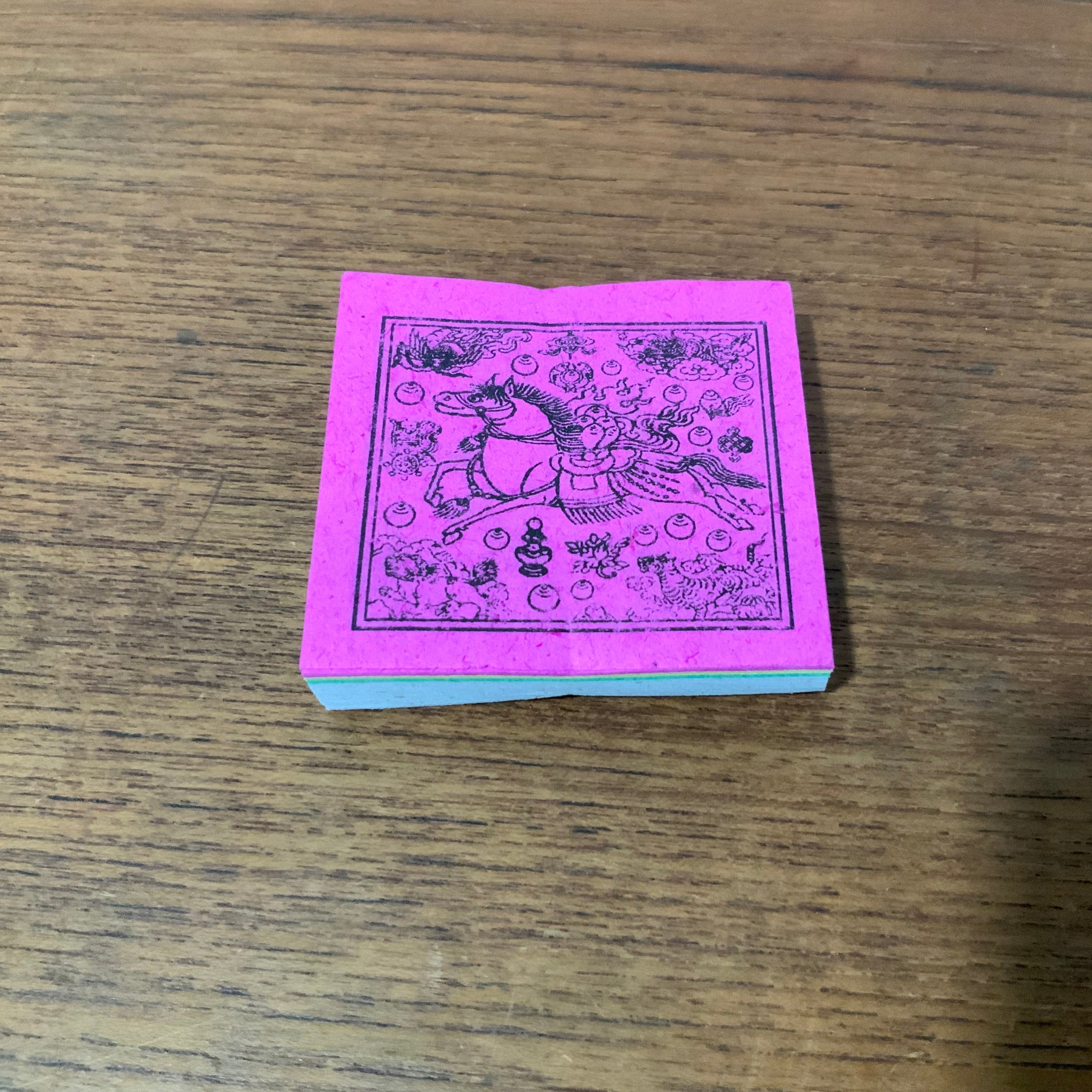 This wind horse prayer flag is made by high quality Tibetan paper. Decorated by auspicious buddhism mantras and symbols. Printed in four fundamental colors ( white, red, green and yellow) which symbolize the elemental balance of inner peace and outer prosperity. This prayer flag brings blessings in the surrounding and create a clean and protective place.